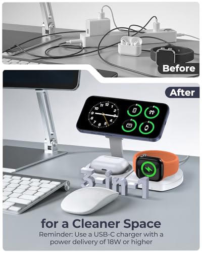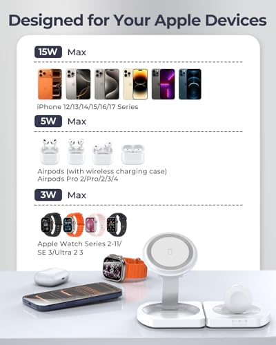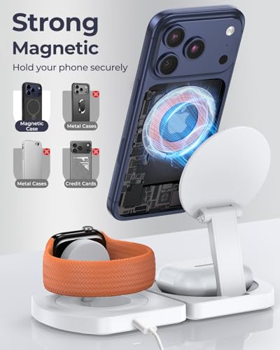 3-in-1 multi-device charging • Magnetic alignment design • Foldable and travel-friendly • Wireless fast charging support • Compact desktop stand • Compatible with select smartphones, watches, and earbuds